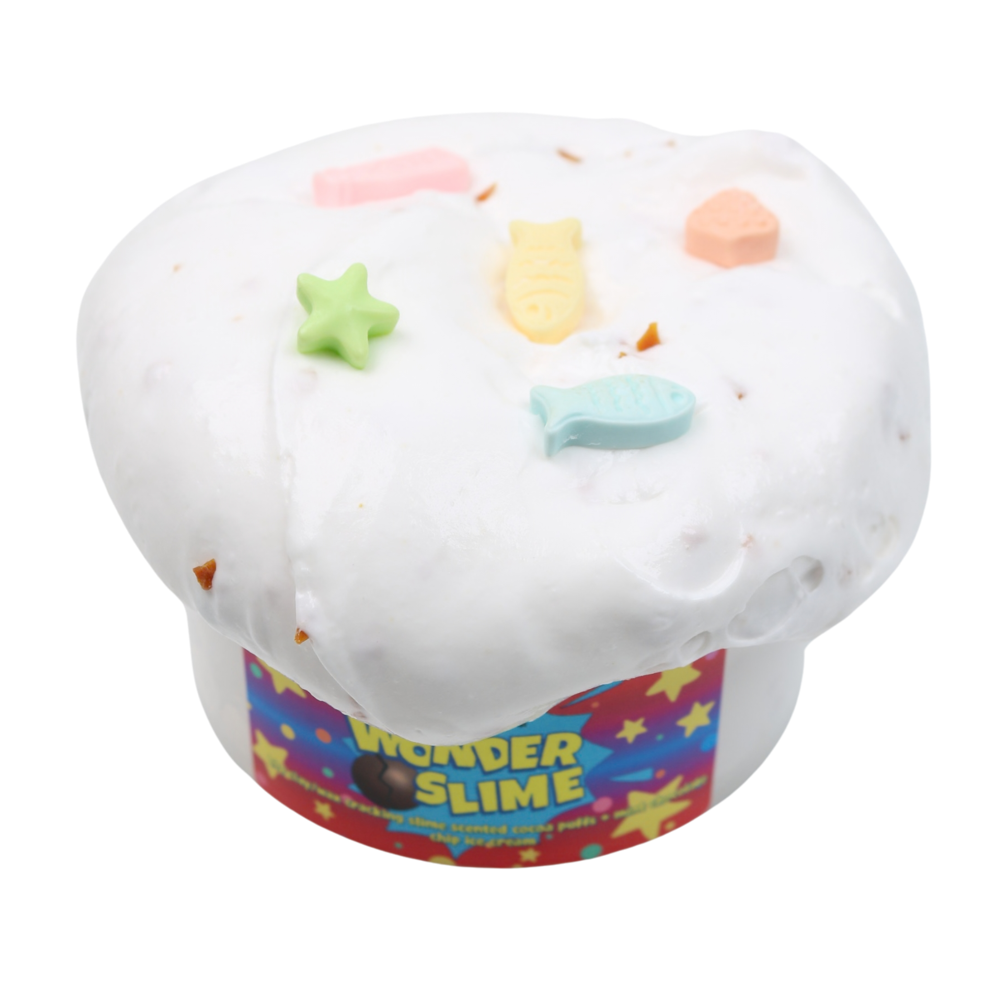 I had to pick this slime up based on the add ins alone and because I'm a sucker for the smell of vetiver. I'm delighted I got it because the texture is really spectacular. This is a dryer jelly, which is my preference, and it has a really nice density to it without being rippy. The fimos look absolutely adorable in it and you will be treated to some.great pops as you play with this slime. The smell was very pleasant and not overly strong. I happily buy again.
